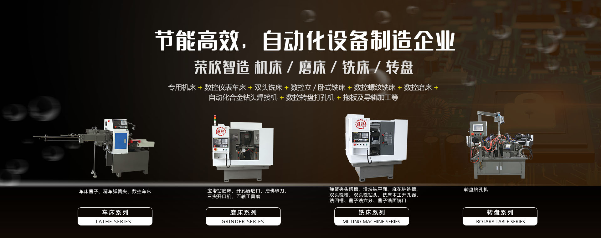 浙江榮欣機(jī)械有限公司坐落于國家首批5A級風(fēng)景名勝區(qū)溫州市雁蕩山麓,是一家集科研開發(fā)、生產(chǎn)、銷售于一體的自動(dòng)化設(shè)備制造企業(yè)。公司擁有多項(xiàng)發(fā)明專利,并已取得ISO9001質(zhì)量管理體系認(rèn)證。       在多年的業(yè)務(wù)拓展中,已與眾多企業(yè)建立了長期愉快的合作關(guān)系,足跡遍布全國各地,憑借多年的生產(chǎn)經(jīng)驗(yàn)和技術(shù),自主開發(fā)了一系列的全自動(dòng)及半自動(dòng)機(jī)床,現(xiàn)有主導(dǎo)機(jī)床產(chǎn)品有:專用機(jī)床、數(shù)控儀表車床、雙頭銑床、數(shù)控立/臥式銑床、數(shù)控螺紋銑床、數(shù)控磨床、自動(dòng)化合金鉆頭焊接機(jī)、數(shù)控自動(dòng)轉(zhuǎn)盤打…